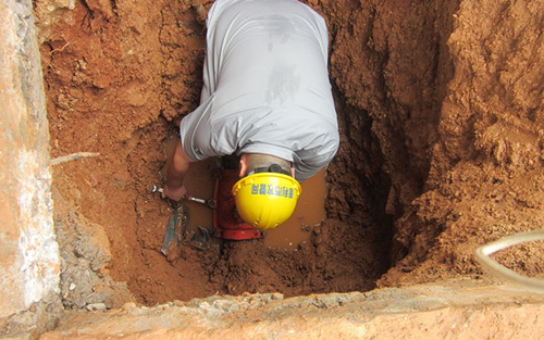 2014年7月6日,早上9點,白馬山鐵路新村小區5號樓3單元前出現漏水,管網公司搶修中心西站值班人員接熱線工單后立刻趕到現場,在炎炎烈日下展開搶修工作,終于在5小時后修復完畢恢復供水,而此時,汗水也早已打濕了衣衫。